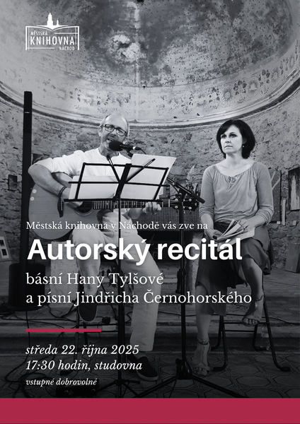 V úterý 22. října pořádáme od 17:30 hodin ve studovně autorský recitál. Hana Tylšová představí svou lyrickou tvorbu včetně sbírky Bez noci není svítání a haiku, které jemně zachycují okamžiky, přírodu i nálady. Jindřich Černohorský nabídne alternativní folk s hlubokými texty a propracovanou hudbou, která přesahuje hranice tradičního žánru.