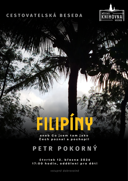 Petr Pokorný se v květnu loňského roku zúčastnil mezinárodní konference ochránců přírody A Rocha na Filipínách. Ve čtvrtek 12. března v 17:00 hodin přiblíží na besedě v dětském oddělení setkání s místními lidmi, rozmanitou přírodu i osobní postřehy, které si z cesty odvezl. Vstupné dobrovolné.