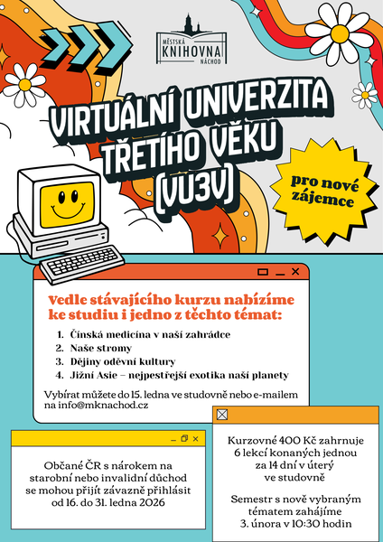 V jarním semestru 2026 nabízíme vedle stávajícího kurzu Virtuální univerzity třetího věku i jedno z následujících čtyř témat:
