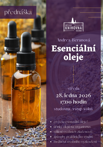 Ve středu 28. ledna pořádáme od 17:00 hodin ve studovně setkání věnované esenciálním olejům, při němž se dozvíte, co tyto přírodní vonné látky jsou a jak působí na ...