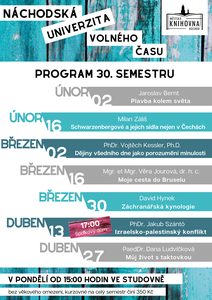 Už 16. rokem nabízíme v rámci NUVČ možnost rozšířit si obzory a setkat se s odborníky z různých oblastí. První přednáška 30. semestru proběhne v pondělí 2. února a ...